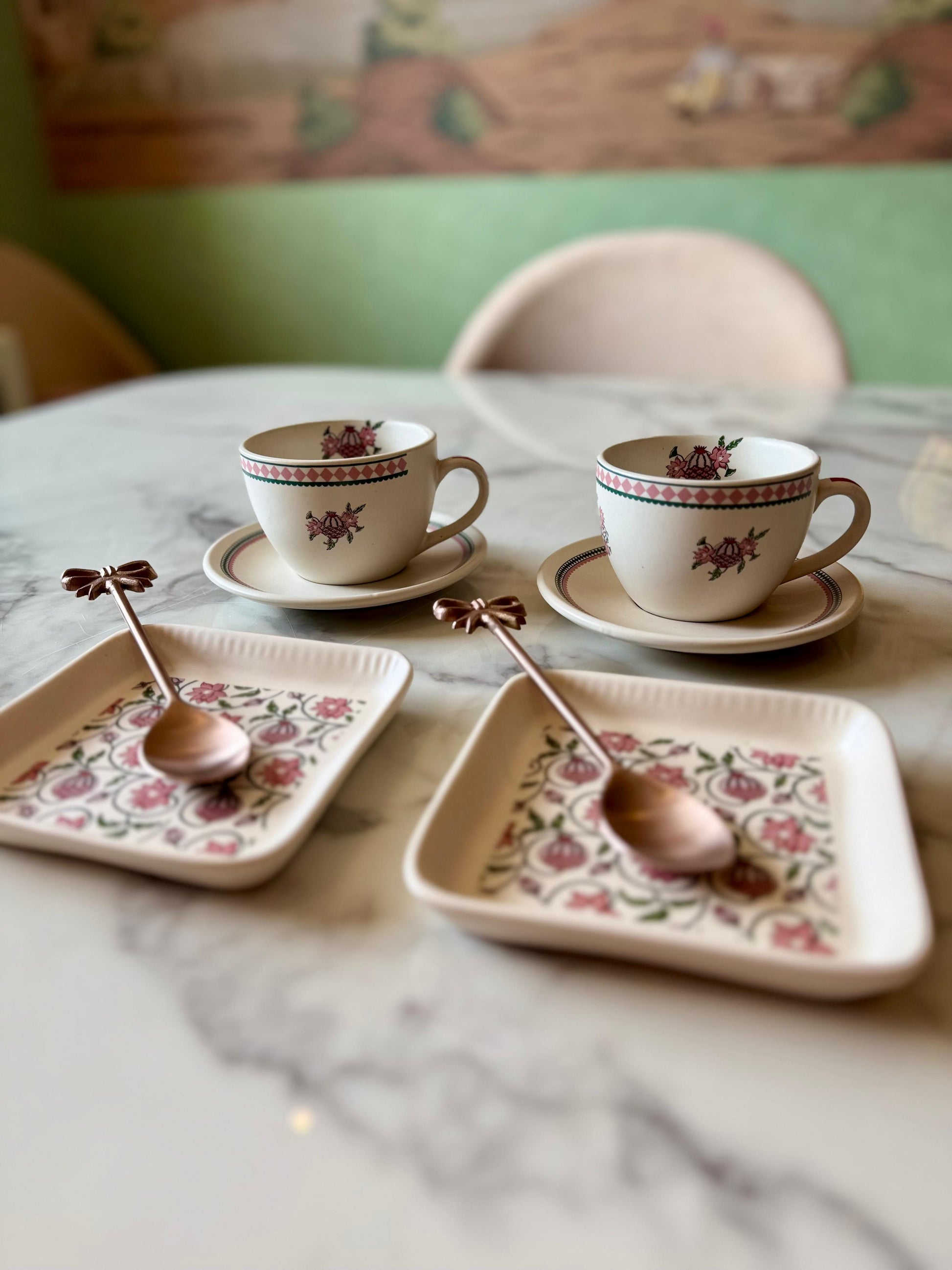 Visual Appeal: The color palette of soft pinks, deep reds, and forest greens creates a warm and inviting look that pairs beautifully with various table linens.